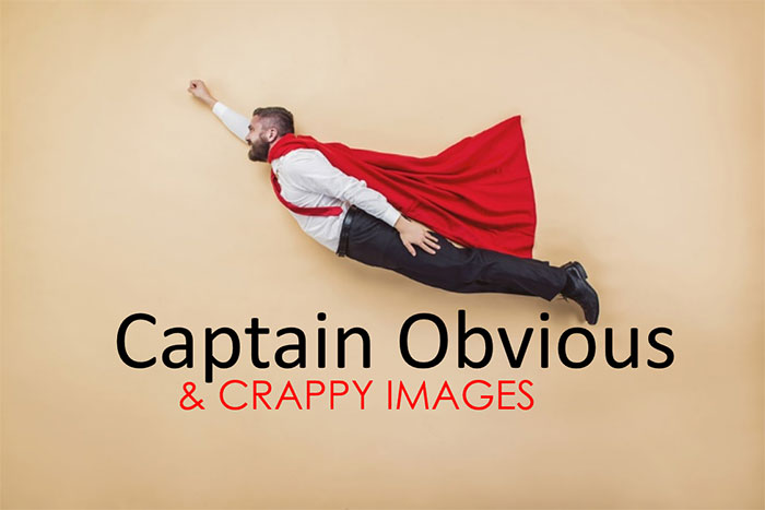 One thing those two images above have in common is that they both somehow make their points as-is. Sometimes your images need a little help to tie them into the theme. A popular technique is to simply augment an otherwise unrelated image by embedding a caption directly onto the image.