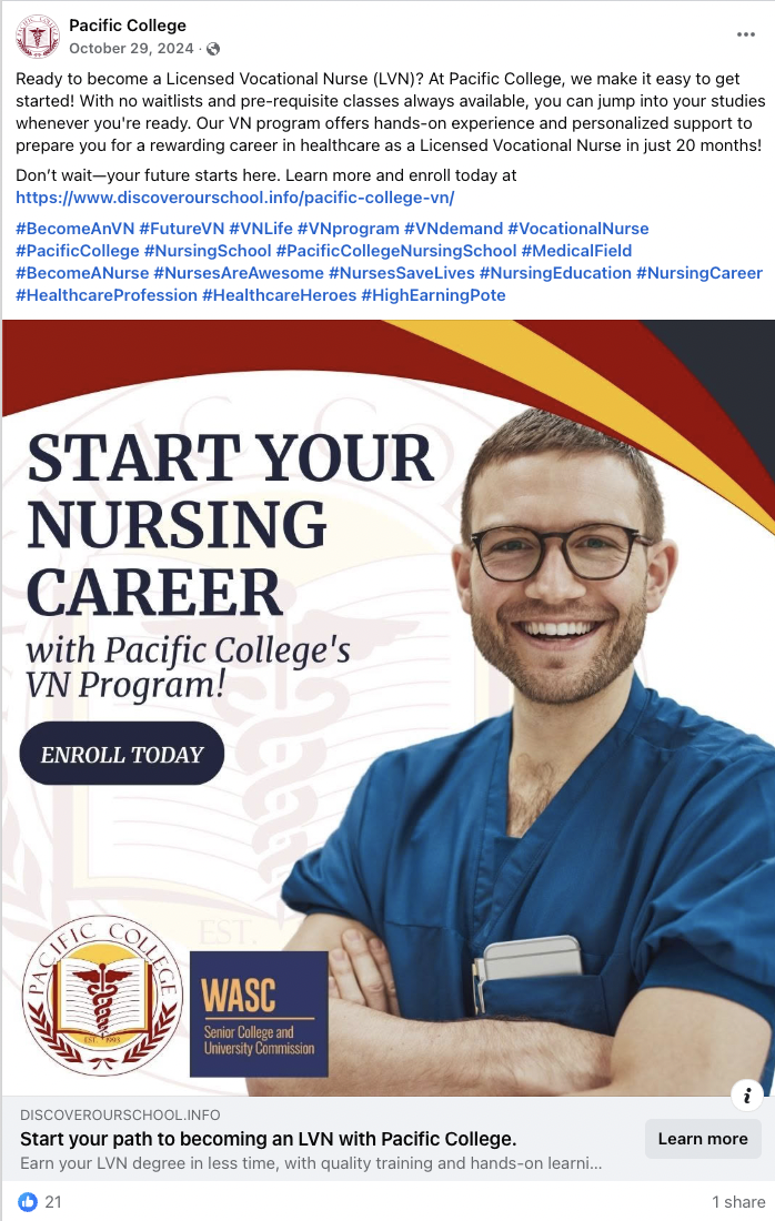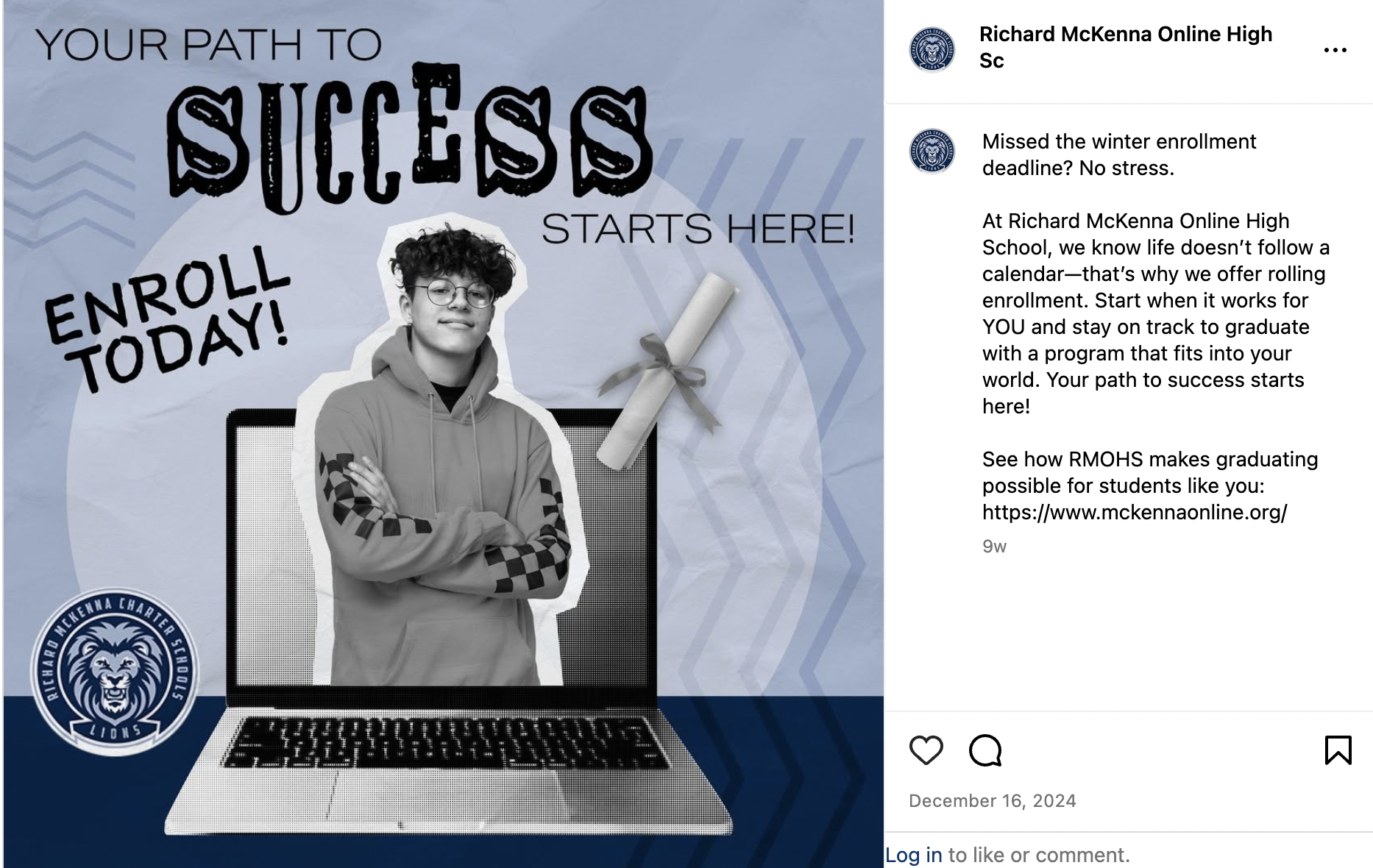 Let’s take your school’s digital presence to the next level. Whether you need targeted ads, engaging content, or a full social media strategy, we’re here to help. Contact us for a discussion on what might be right for YOUR organization.